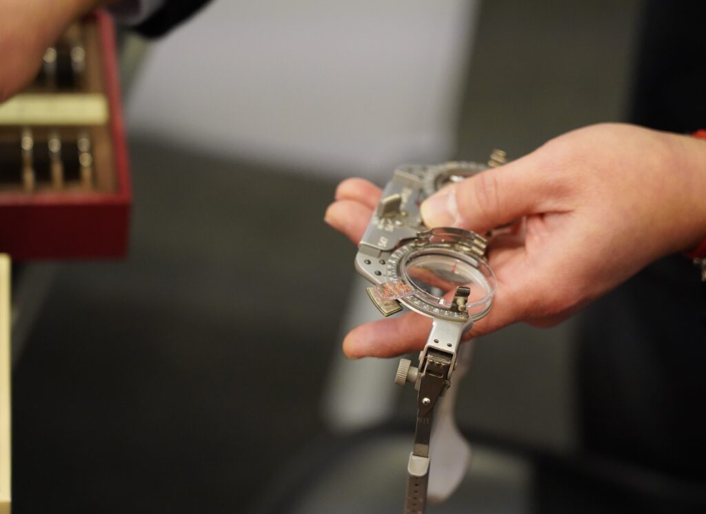 当店では、通常の片眼測定に加え「両眼視測定」を実施しております。目のズレや左右バランスのチェックを行い、プリズムレンズなどの対応も可能です。