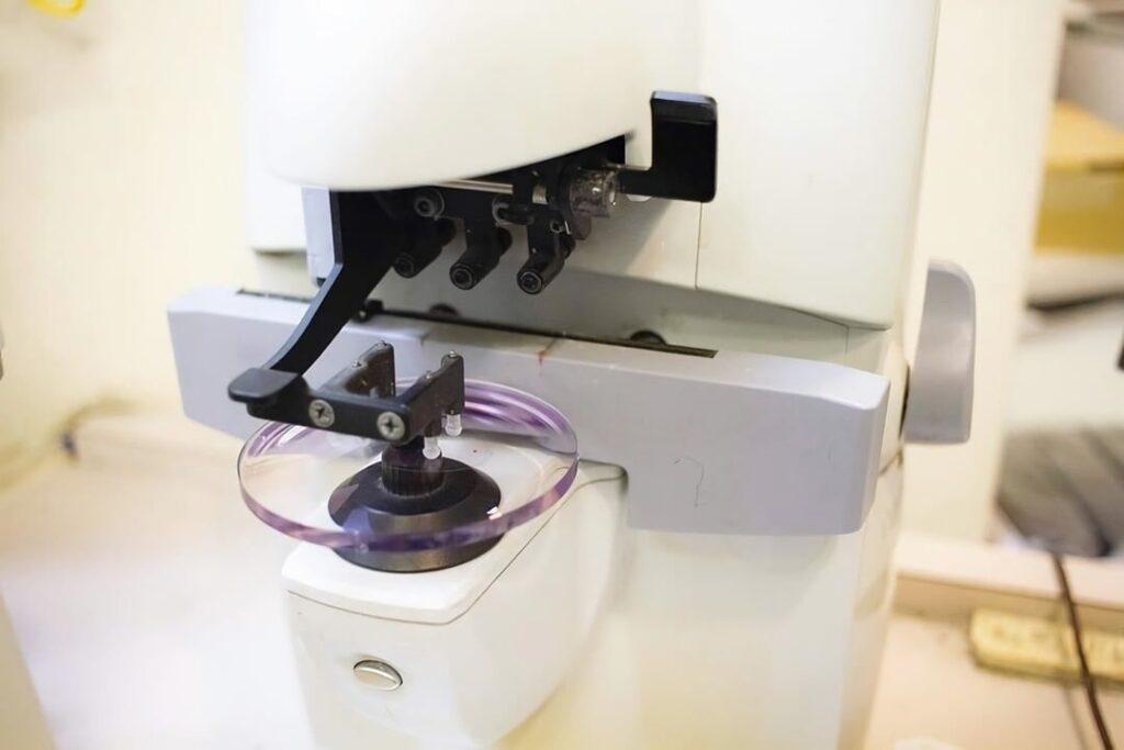 そして、多焦点レンズを使う上で命とも言えるのが、お顔に合わせた調整(フィッティング)です。 多焦点レンズは、見る位置によって度数が変わる精密な作りをしています。そのため、メガネが鼻から少しズレ落ちているだけでも、本来の「見えるポイント」から外れてしまい、「見えにくい」「クラクラする」という不快感につながります。