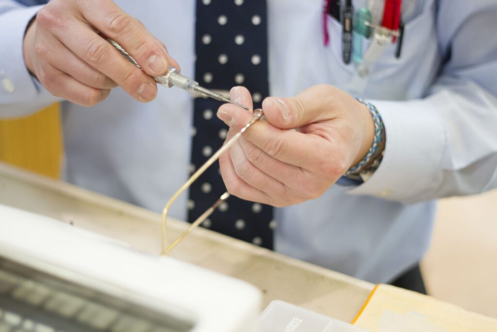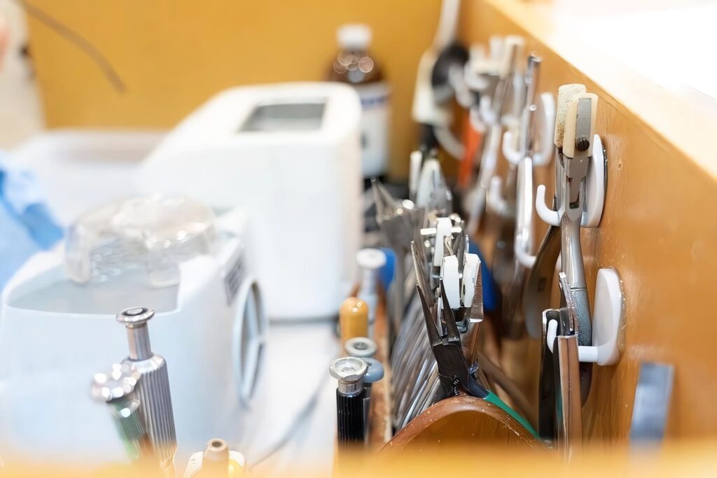 そして、私たちが最も大切にしているのが「フィッティング(調整)」です。 どんなに高価なレンズを使っても、メガネが正しい位置になければ、その性能は発揮されません。お一人おひとりの骨格や、耳の高さ、視線の癖に合わせて、1ミリ単位でフレームを調整する。 これこそが、昭和13年から続くメガネのタナカヤのこだわりであり、お客様に「ああ、楽になった」と言っていただける理由です。