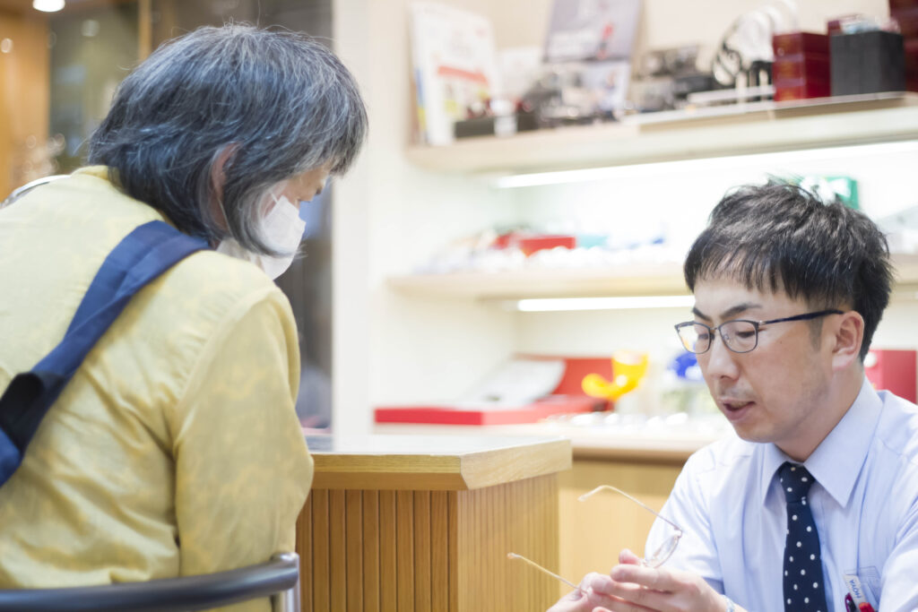 ここで少し、私たちが店頭で大切にしている裏話をお話しさせてくださいね。実は、優れたメガネをお作りするための測定は、機械をのぞき込んでいただく前からすでに始まっているんです。お店に歩いて入って来られる際のお顔の傾き、お話しされる時の視線の動かし方、スマートフォンの持ち方のクセなど、何気ないしぐさの中に「なぜ今、見えにくさを感じているのか」というヒントがたくさん隠されています。これは、ネットで度数を入力するだけでは決して分からない、長年お客様の目を見つめ続けてきた私たちプロならではの視点です。